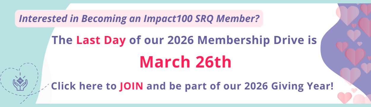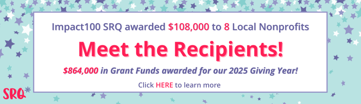 PLEASE NOTE: Impact100 SRQ is committed to maintaining a level playing field at all times with all nonprofit organizations. Accordingly, our business dealings and decisions, including those relating to our grant application review processes, venue selection, event sponsorship and co-hosting opportunities, are always made without any preferential treatment or consideration given to any nonprofit organization.